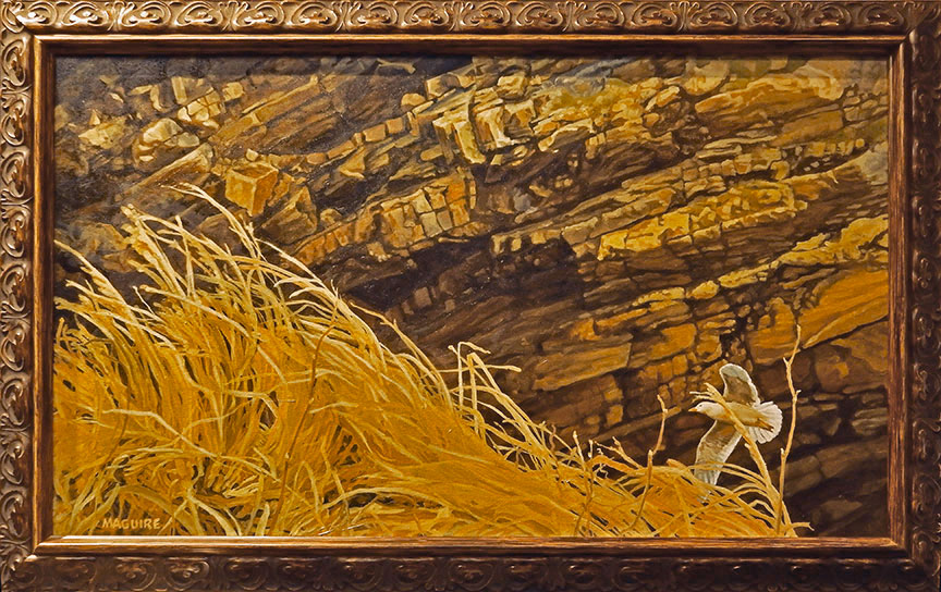 For me, it was all about the fresh wind and the rocky promontory towering over a natural fissure. I wanted to bring that rocky wall home with me so this painting is the next best thing.